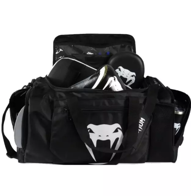 A nova BOLSA VENUM NEW CHALLENGER STREET é Confeccionada no tecido Atlanta preto, dimensões 60 x 33 x 28cm (base x altura x profundidade), fechamento com tampa “U”, dois bolsos laterais externos (um com porta roupa suja) com 6 ilhoses para respiro e detalhe em tela emborrachada.