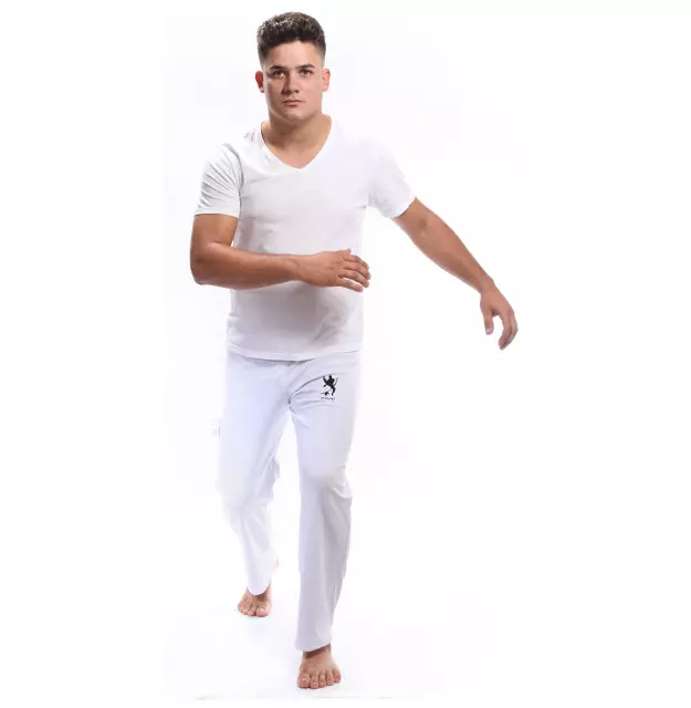 Calça de capoeira branca em poliéster.