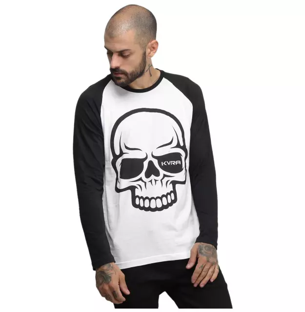 Dê uma repaginada no visual com a Camisa KVRA Full Skull Manga Longa Masculina!