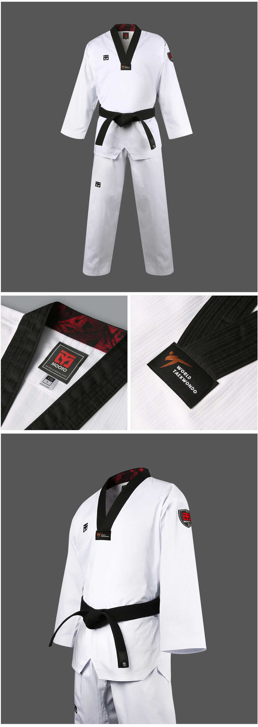 O mundialmente famoso Uniforme BS 4.5 da Mooto é aprovado pelo WT(World Taekwondo) e fabricado na Coréia, a casa do Taekwondo.