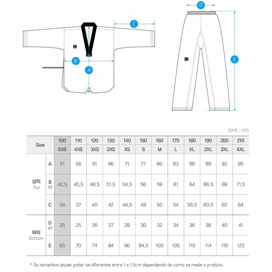 É extremamente importante que você verifique abaixo as informações sobre o tamanho do dobok para que você faça a escolha correta.