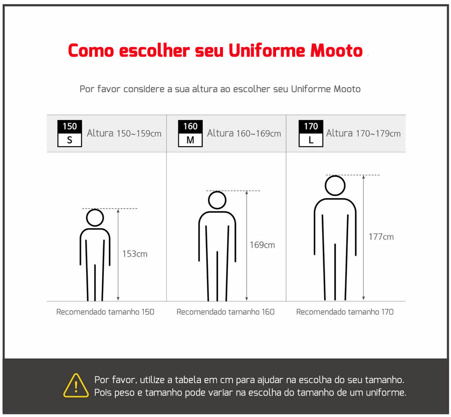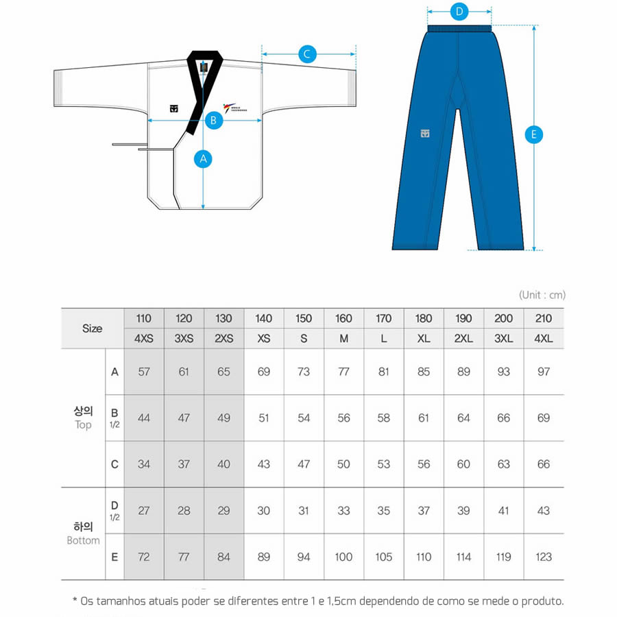 É extremamente importante que você verifique abaixo as informações sobre o tamanho do dobok para que você faça a escolha correta.