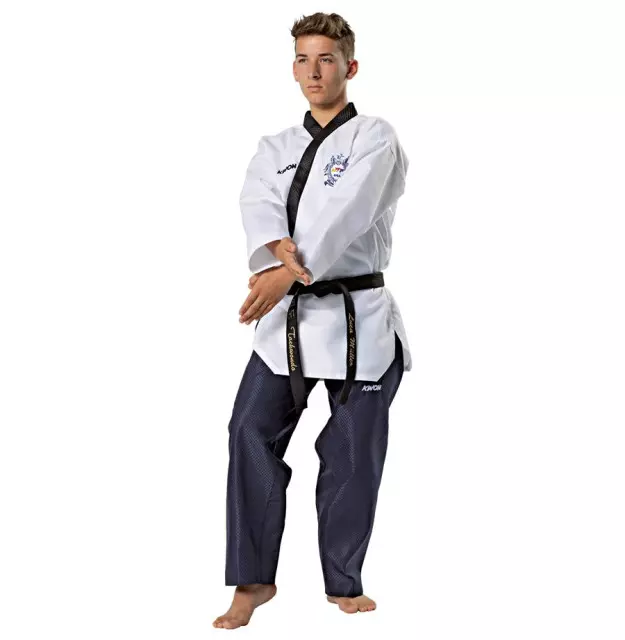Esse Dobok Kwon Poomsae Dan homologado WTF é para aqueles que atingiram do 1o ao 6o Dan.
