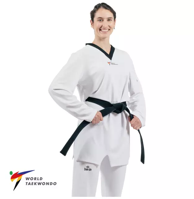 Dobok aprovado pela World Taekwondo para ser utilizado em competições no mundo inteiro e campeonatos realizados pela CBTKD.