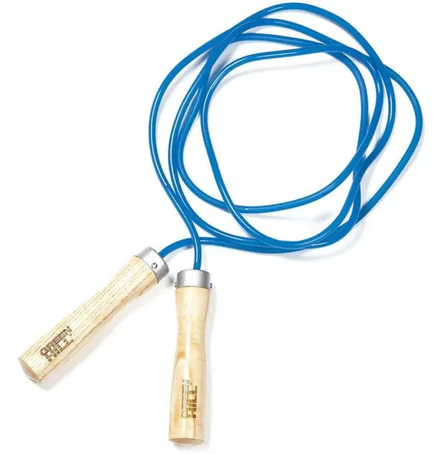 Esta corda de salto rápido com cabos de madeira garante um movimento mais rápido da corda ajuda na queima de calorias de forma rápida e natural. Além de queimar calorias, ele tem a capacidade de melhorar a coordenação e a força no treinamento de boxe e artes marciais. A corda de nylon é recomendada para iniciantes e, por ser mais leve, coloca menos pressão nas articulações.