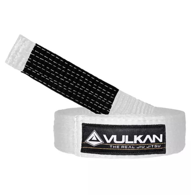 Faixa Jiu Jitsu Vulkan é uma faixa sólida e ao mesmo tempo flexível, espessura 5mm, largura 4cm, com ponta preta de 12 a 13cm e 8 costuras. Faixa de ótima qualidade da marca Vulkan.