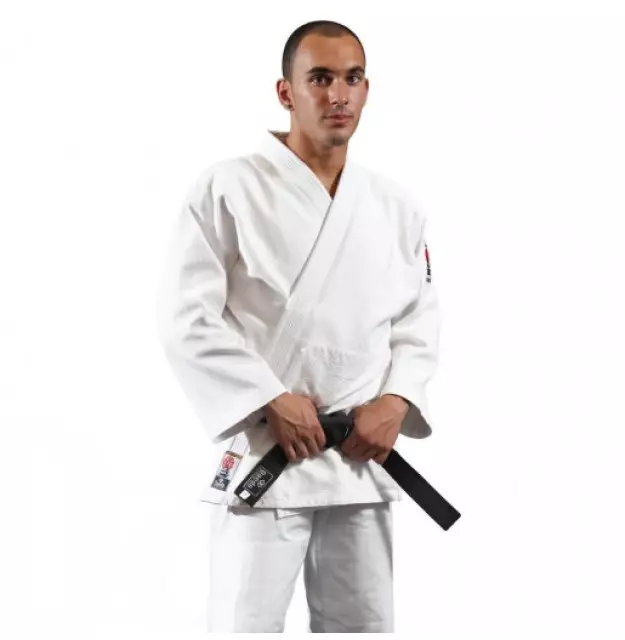 Judogi DAEDO "Gold" branco, 100% algodão, peso 485gr, composto por casaco e calças com atacadores tradicionais na cintura, com reforço nos ombros, peito e joelhos