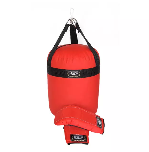 Saco de boxe pequeno, indicado para crianças até 8 anos, acompanha uma luva de bate saco infantil.