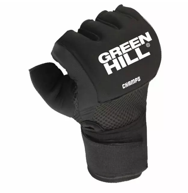 Costura entre os dedos, orifício para o polegar e alça para puxar o protetor. -