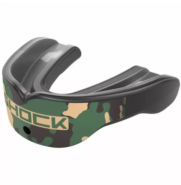 O protetor bucal Shock Doctor Gel Max Power acompanha fita / strap para prender ao capacete de futebol americano, pode ser usado também sem a fita e pode ser guardado em estojo próprio (vendido separadamente), evitando bactérias e prolongando o tempo de vida do protetor bucal.